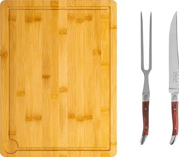 Host your next dinner party with ease using this set that features a carving board, an ergonomic-handled carving knife and fork.