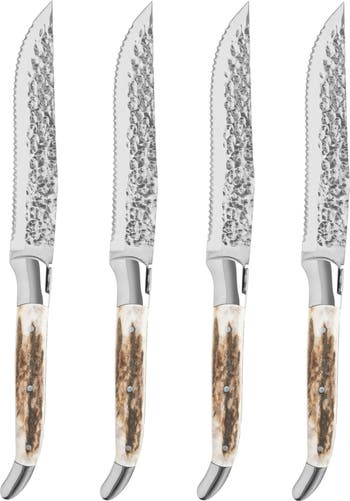 Horn handles bring refined detail to this set of four steak knives with stainless-steel blades.