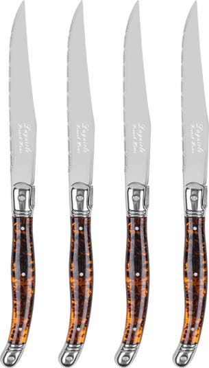 This set of steak knives from French Home features their traditional Laguiole design, boasting the iconic three-rivet curved handle that's comfortable to hold and perfectly balanced. The bee emblem, a symbol of Napoleon and the French monarchy, completes this set with elegant taste.