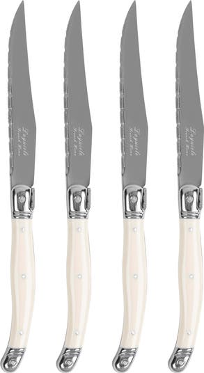 This set of steak knives from French Home features their traditional Laguiole design, boasting the iconic three-rivet curved handle that's comfortable to hold and perfectly balanced. The bee emblem, a symbol of Napoleon and the French monarchy, completes this set with elegant taste.