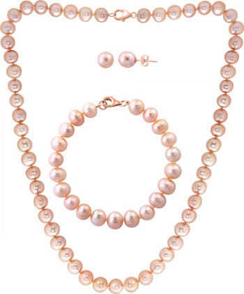 Bring an air of elegance to your ensembles with this seamless set featuring peachy freshwater pearls.