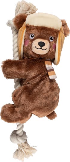 Entertain your furry best friend for hours with this bear-shaped dog toy featuring a squeaker and crinkle for added fun.
