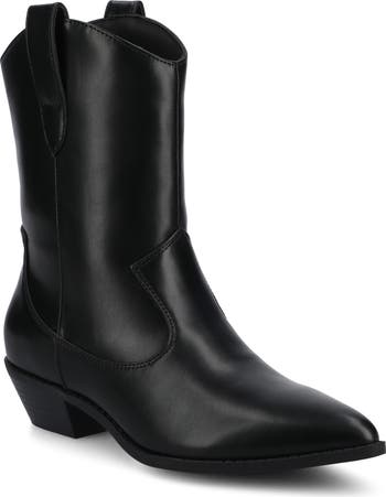 Add country flair to your ensemble in a Western-inspired boot with clean stitches, pull tabs and a pointed toe.