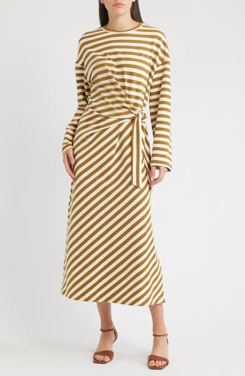 All the stripes lead to a good place with this cotton-enriched dress shaped with a side knot and eased with a slit.