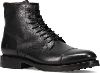 Smooth and pebbled leather bring dimension to this timeless cap-toe boot designed with flexibility.