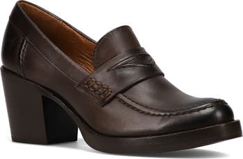 A chunky stacked heel adds modern impact to this amply cushioned penny loafer trimmed with raised stitching for a heritage finish.