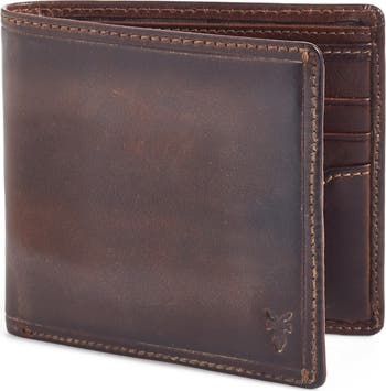 A tanned pull-up leather billfold wallet features multiple card and currency slots to keep your plastics and cash organized. The leather takes on a beautiful aged patina over time.