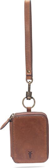 Frye's signature motif lends branded appeal to a petite pouch crafted from smooth leather and topped by an optional wristlet strap.
