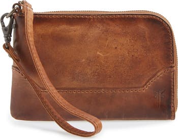 Subtle logo embossing and a distressed leather finish harness the high-quality craftsmanship of a streamlined wristlet designed to stow your smartphone and other necessities.