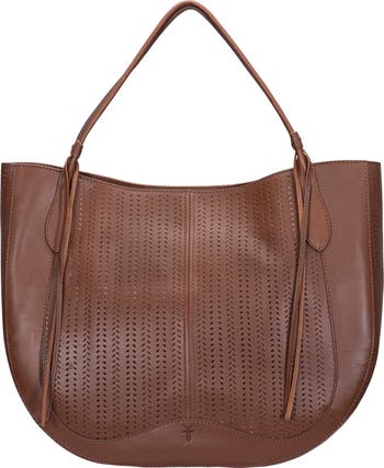 Geometric cutouts neatly punctuate a smooth leather tote bag lined in soft cotton and done in a slender silhouette for easy, everyday carry.
