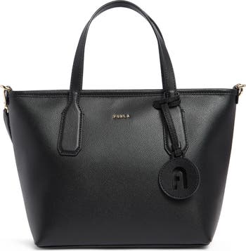 A classic leather bag with a spacious interior is fashioned with dual ways to carry to bring versatile appeal to your weekly looks.