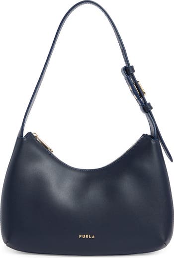 Rich, supple leather contributes to the slouchy hobo silhouette of this softly curved bag detailed with gleaming logo hardware.