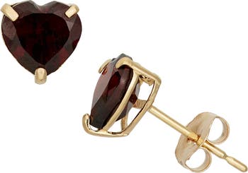 Faceted garnet hearts bring sweet sparkle to these dainty stud earrings set in polished 10-karat gold.