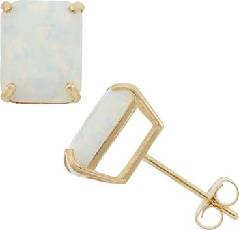 Perfect for everyday wear, these sparkling studs are centered with emerald-cut stones in warm 10-karat gold.