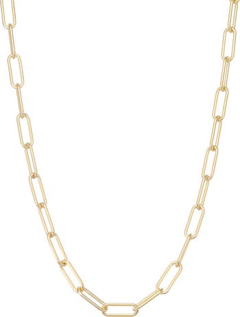 Simple details offer versatile styling of an Italian paperclip-chain necklace warmed with 14-karat-gold plating.