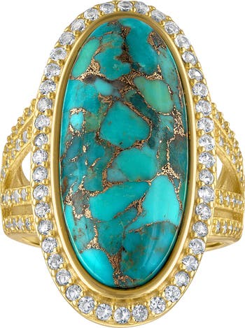 • Adornia 14K Yellow Gold Plated Turquoise & Swarovski Crystal Accented Evil Eye Ring