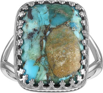 Bring a wash of cool color to your ensembles with this composite turquoise ring crafted from sterling silver.