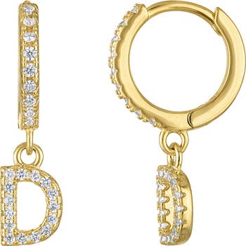 Add a little personality to your look with these cubic zirconia-covered huggie hoops featuring a dangling initial charm.