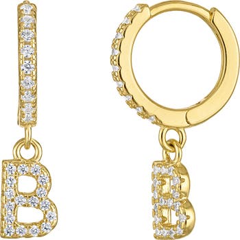 Sparkle in these cubic-zirconia-accented huggie hoop earrings adorned with an initial charm for a chic, everyday statement.