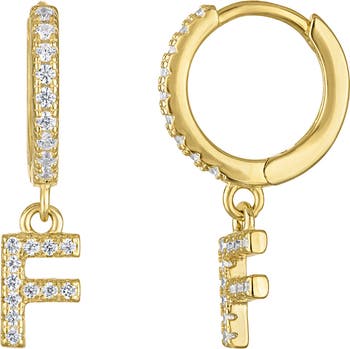 Customize your look with these classy huggie hoop earrings with an initial charm filled with sparkling stones and a goldtone plating.