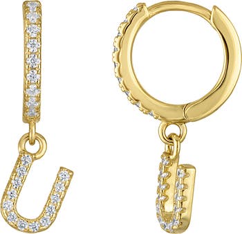 Customize your look with these classy huggie hoop earrings with an initial charm filled with sparkling stones and a goldtone plating.