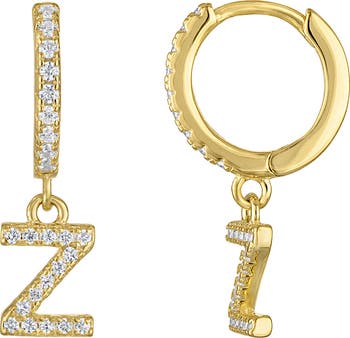 Customize your look with these classy huggie hoop earrings with an initial charm filled with sparkling stones and a goldtone plating.