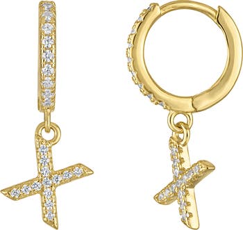 Customize your look with these classy huggie hoop earrings with an initial charm filled with sparkling stones and a goldtone plating.