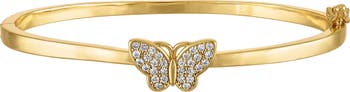 A butterfly alight with pavé cubic zirconia sparkles at the focal point of this kid-size bracelet.