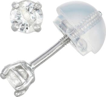 Add sparkle to your little trendsetter's lobes with these prong-set stud earrings featuring sparkling diamond centers.
