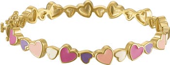 Mixed-scale hearts in various colors of enamel bring kid-approved style to this hinged bracelet.