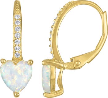 • FZN 10K Gold Opal & Lab Created White Sapphire Stud Earrings