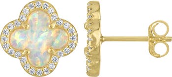Clover-shaped opals framed by pavé cubic zirconia bring lovely iridescence to these dainty, kid-size stud earrings.