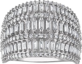 Lab-grown diamonds dial up the glamour of a sterling silver ring.