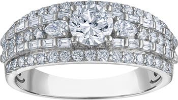 Lab-grown diamonds dial up the glamour of a sterling silver ring.