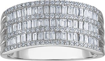 Lab-grown diamonds dial up the glamour of a sterling silver ring.