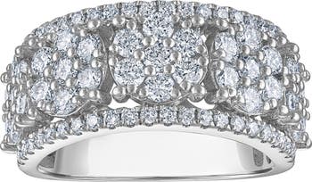 Lab-grown diamonds dial up the glamour of a sterling silver ring.