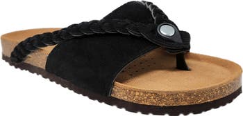 A contoured footbed cushions your every stride in a slide sandal topped with braided leather straps for extra style points.