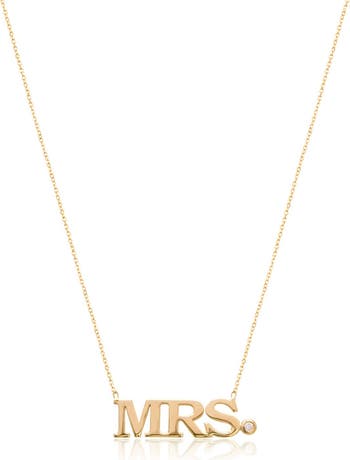 A lovely bridal shower or wedding gift, this 'Mrs.' pendant necklace is crafted from 14-karat gold vermeil with a cubic zirconia accent for dainty sparkle.