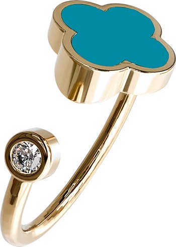 A bezel-set stone and glossy clover add a pop of color to this sterling silver station open-cuff ring dipped in gleaming goldtone plating.