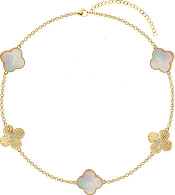 These effortless clover-shaped stations decorate a delicate chain bracelet crafted in gleaming 14-karat gold to bring an elegant finish to even your most casual outfits.