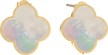 Shimmery mother-of-pearl inlays enrich these polished clover stud earrings crafted from warm 18-karat gold vermeil.