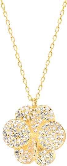Show off dazzling sparkle in this 14-karat gold-plated sterling silver necklace suspending a pavé cubic zirconia flower pendant.