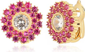 Clear and rosy cubic zirconia bring dazzling sparkle to elegant stud earrings crafted in 14-karat gold-plated sterling silver.