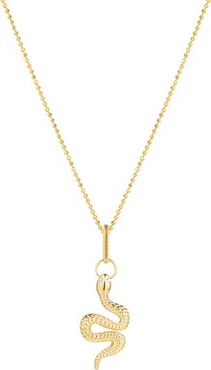 A slithering serpent pendant fashioned with cubic zirconia eyes is suspended off a dainty chain necklace that makes a bold statement in your everyday looks.