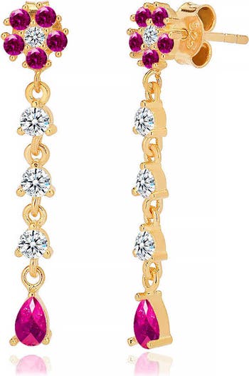 • GABI RIELLE 14K Yellow Gold Sterling Silver Pave CZ Huggie Hoop & Dangle Earrings