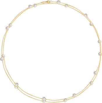 - - Yellow gold vermeil bezel set faceted round-cut CZ station wrap necklace - Lobster clasp - Approx. 42" length - Imported
