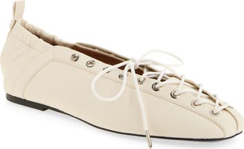 Taking inspiration from the world of dance, this square-toe flat features a ballerina-informed profile secured with ghillie lacing.