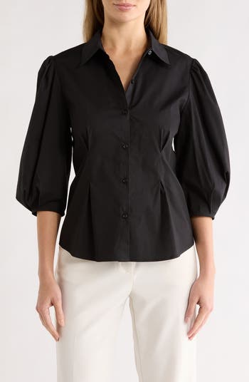 Three-Quarter Sleeve Pleated Waist Button-Up Shirt