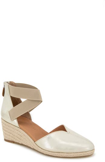 Plush layers of memory foam and PORON® cushioning support this espadrille-inspired wedge featuring stretchy ankle straps and a rear zip for easy-on comfort.