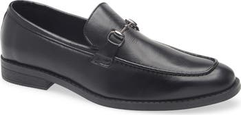 Glinting hardware crosses the vamp of this ever-essential loafer made from smooth faux leather.